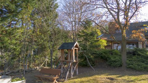 A parkosított kertben bükk- és tölgyfák adnak árnyékot, éjszakai díszvilágítás emeli ki a fák szépségét és a szaletlihez vezető hangulatos lejáratot. A kertben madarak éneke kíséri a napokat, ami tovább fokozza a hely nyugalmát és természetközeli atmoszféráját.