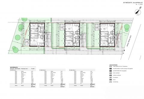 A három db ház egy 1 050 m2-es telekre épül, melyből a hírdetésben szereplő telekhányadok kizárólagos használati joggal használati megállapodás alapján tartoznak az ingatlanokhoz. A maradék telekhányad közös használatú út. Az egységek önálló helyrajzi számmal fognak