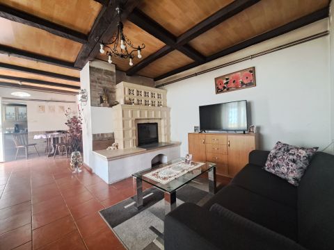 Das Haus bietet drei Zimmer, ein Wohnzimmer, ein Esszimmer, eine Küche, ein Badezimmer, eine separate Toilette und eine Speisekammer. Für behagliche Wärme sorgt ein großer wasserführender Kamin, der das ganze Haus angenehm temperiert. Der sonnige, überdachte Gang kann als Wintergarten genutzt werden und schafft einen gemütlichen Ort zum Entspannen.