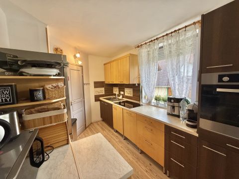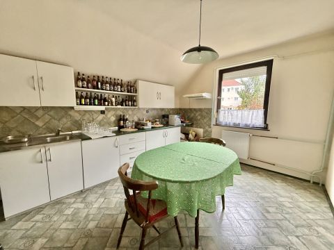 Az 1984-ben épült, utcafronti ingatlan összesen 150 m² lakóterű. Alsó szintjén tágas nappali, két külön nyíló szoba, fürdőszoba, nagyméretű konyha étkezővel, valamint kamra kapott helyet. A tetőtérben további 2 és fél szoba, egy konyha-étkező, fürdőszoba és egy erkély található, így akár külön lakrészként is használható. Az épület alatt egy 46 m²-es alagsor is rendelkezésre áll, amely tárolásra vagy egyéb célra kiváló.
