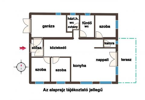 A nappalinál 18nm-es terasz épül, inne lehet kijutni a 764nm-es kertbe, mely tereprendezve kerül átadásra.