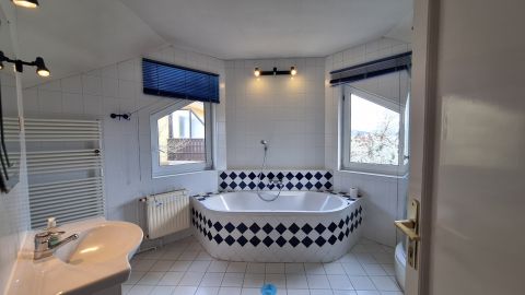 Upstairs: 4 bedrooms, a huge bathroom, and a loggia