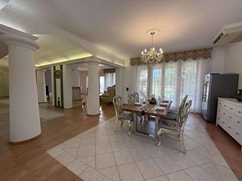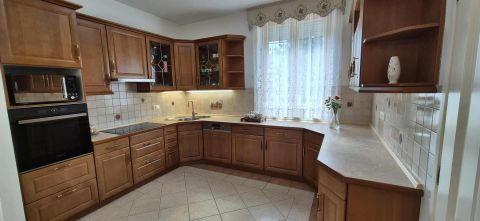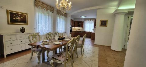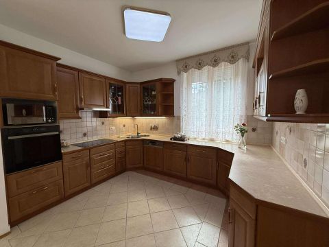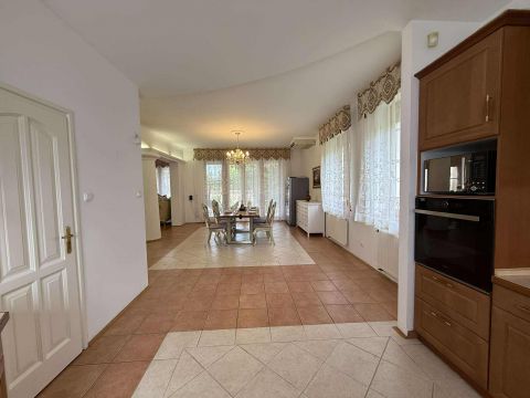 A nappali +7 szobás tégla építésű családi ház 1242 m2-es, parkosított telken helyezkedik el. A ház belsejét a napfény árasztja el, amely a redőnyökkel felszerelt, hőszigetelt fa ablakokon át szűrődik be. A laminált padlóval ellátott szobák, a tömör fa konyhabútor és a beépített gépek egyesítik a funkcionalitást és az eleganciát. Két fürdőszoba, egy gardróbszoba beépített szekrényekkel, valamint egy bükkfa lépcső emeli a komfortérzetet. A biztonságot riasztó rendszer garantálja, míg a klíma a nyári hónapokban nyújt kellemes hűvösséget. Egy finn szauna és a wellness részleg a mindennapok luxusát hozza el otthonába. A 30 m2-es terasz, az automata öntözőrendszerrel fenntartott, szépen parkosított és térkövezett udvar, valamint a dupla garázs kínálta kényelem minőségi életstílust ígér az új tulajdonosoknak.