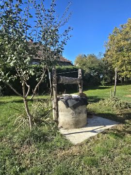 A tornáccal szemben, azaz a kert első részén található egy 9 méter mély ásott gyűrűskút, mely szépen kiszolgálja a kertet.