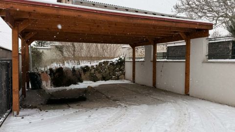 - Fedett, dupla kocsibeálló elektromos kapuval