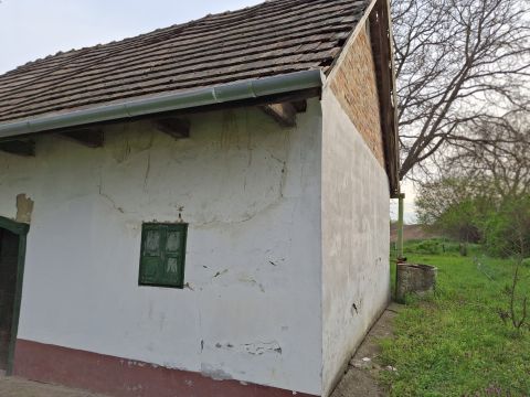 A területen egy öreg vályogház nagy boltíves pincével, a ház erősen felújítandó.