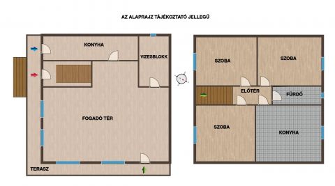 Az ingatlan különlegessége, hogy az alsó szinten korábban vendéglátóegység működött, ennek megfelelő kialakítással rendelkezik,