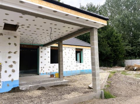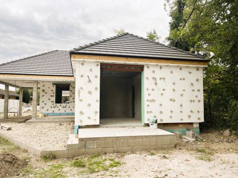A ház korszerű hőszigeteléssel, hőszivattyús fűtéssel és napelemrendszerrel készül, várható AA++ energiabesorolással.
