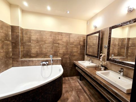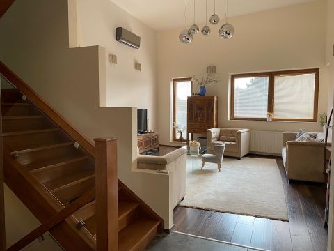 Műszaki tartalom: 30-as PRTH falak kb. 13 cm-es kézzel válogatott bontott tégla díszborítás, fenyőfa nyílászárók. A tulajdonosok folyamatosan korszerűsítették, modernizálták az ingatlant: 2010-ben fejezték be az alsó szint kialakítását, a tetőtér pedig friss beépítés. A klímák energiatakarékosak, fűtésre is optimalizáltak, a kandalló szintén korszerű. A fűtésrendszer tavaly újult meg: vadonatúj Stiebel Eltron hőszivattyú került telepítésre. Az épület az energetikai besorolása B kategória.