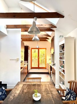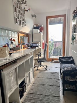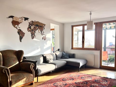 A középső szint 88,49 nm-es, déli fekvésű, fényárban úszó nappali cserépkályhával, terasszal, világos étkezős konyha, egy déli fekvésű hálószoba és kádas fürdőszoba,dolgozó sarok helyezkedik el. Legfelső szint 65,32 nm-es , 2 hálószoba, és egy kádas fürdőszoba található. A fűtést gázkazán biztosítja, alternatív fűtésként pedig fatüzelésű cserépkályha és hűtő-fűtő klíma is használható. Parkolási lehetőség telken belül akár 2 autó is elfér.