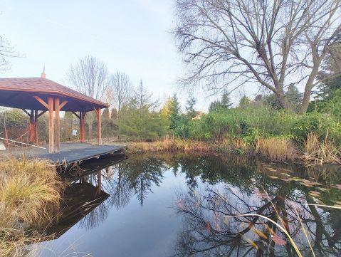 - kertépítő által megálmodott és megvalósított csodás kert, kerti tóval (különleges növények (japán cseresznye), sok-sok koi ponty)