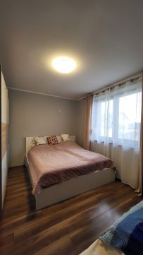 A belső terek modern és otthonos hangulatúak: a nappaliban álmennyezet és spotvilágítás került kialakításra, a konyhában pedig praktikus konyhasziget található. A konyhából közvetlen kijárat nyílik a 21 m²-es fedett teraszra és a hátsó udvarra, amely kiváló helyszíne lehet családi és baráti összejöveteleknek, szabadtéri sütögetésnek vagy pihenésnek.