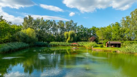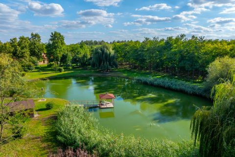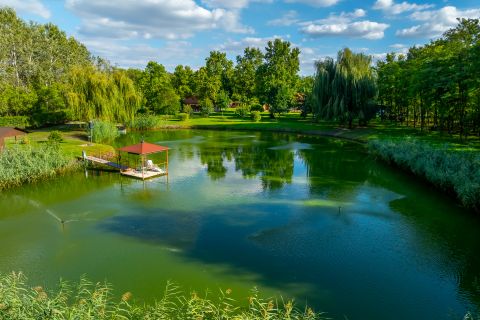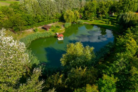 Privát tó ~0,5 ha horgászat, csónakázás, napozó-stégek hangulata, egyedülálló mikroklíma.