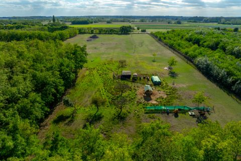 Parkosított, gondozott terület ligetes erdő, gyümölcsfák, pihenőpontok, beérett gyep; készre épített, karbantartott zöld.Teljes nyugalom és diszkréció körbekerített, díszkapun megközelíthető, kíváncsi tekintetek kizárva.