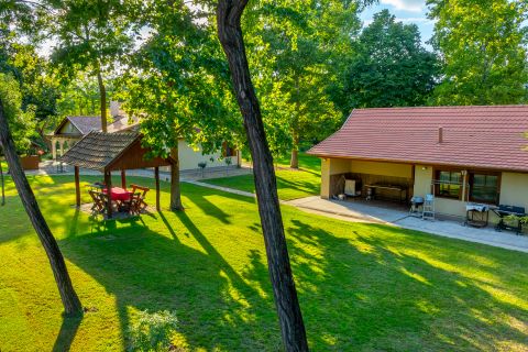 Főépület: napfényes nappali-étkező, fedett teraszok, hálók és vendégszoba saját fürdővel, mosókonyhakazánház.