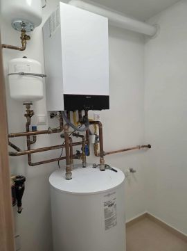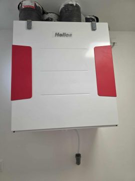 Az energiatakarékos épület, a legmodernebb fűtési és tartalékfűtési lehetőségekkel épült meg. Kondenzációs gázkazán és padlófűtési rendszer, Helios típusú hővisszanyerős szellőztető rendszer, továbbá Daikin típusú levegő/levegő hőszivattyús fűtés/hűtés került beépítésre. Az utóbbi H tarifára lett kötve. Mindegyik távolról is vezérelhető. A családi házban épített Shiedel kémény van és a kandalló telepítését, a vízlágyító beépítését, továbbá a napelemes rendszer alapszerelését is előkészítették.