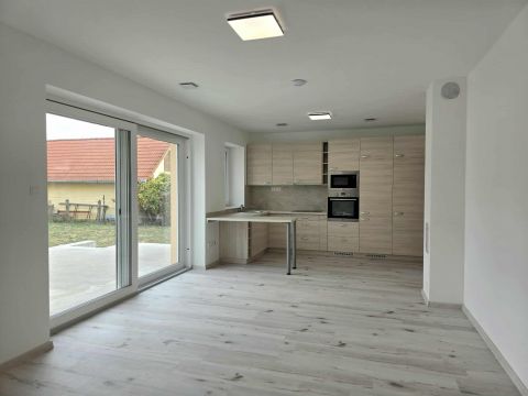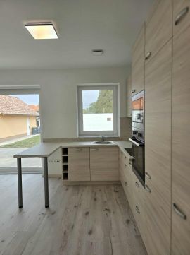 Az egész házra jellemző a praktikus elosztás és kihasználás. Az ingatlanba belépve egy igényesen kialakított előszobát, egy különleges tervezéssel, minőségi anyagokból készült amerikai konyha-étkezőt, és egy nappalit pillanthatunk meg. A nappaliból egy hangulatos, tágas, 35m2-es teraszra léphetünk át. A ház további két különnyíló szobával, fürdőszobával és tárolóval rendelkezik.