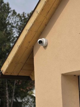 Az ingatlant riasztó- és digitális kamerarendszer védi, a telefonon követhető külső tér ellenőrzésének lehetőségével.