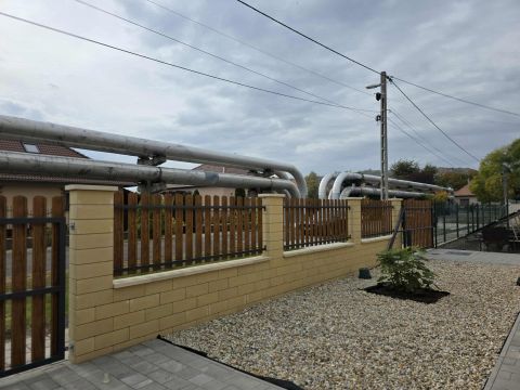 Már a kapun belépve láthatjuk, hogy az családi ház teljesen új kerítést kapott, továbbá Hörmann motoros úszókapu és videós kaputelefon (kapu előtt várakozóval, távollét esetén mobiltelefonról is beszélhetünk) szolgálja az új lakók kényelmét, mely távolról, telefonról is vezérelhető.