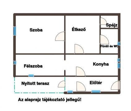 Az ingatlan 1430m2-es telken helyezkedik el. Található benne egy szoba, egy félszoba, étkező, konyha, spájz, fürdő+WC, előtér, egy nyitott terasz.