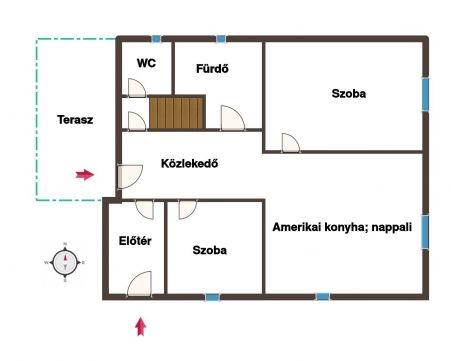 Az ingatlan 110 m² bruttó, 65 m² nettó alapterületű, jelenlegi elosztása: amerikai konyhás nappali + 2 szoba. A belső tér adottságainak köszönhetően további 1 szoba, vagy akár egy teljesen különálló lakrész is kialakítható így többgenerációs otthonnak vagy befektetésnek is ideális választás lehet.