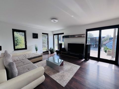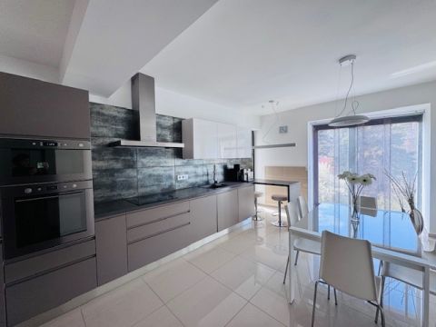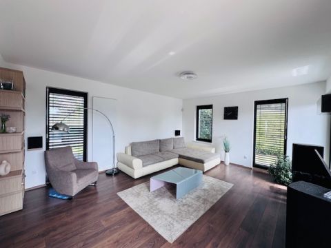 Az alsó szinten mosókonyha, valamint egy szauna kialakítására előkészített helyiség található. A nappaliból és a közlekedőből közvetlen kijárat nyílik a hangulatos , gondosan ápolt kertbe, ahol egy stílusos grillterasz is helyet kapott.