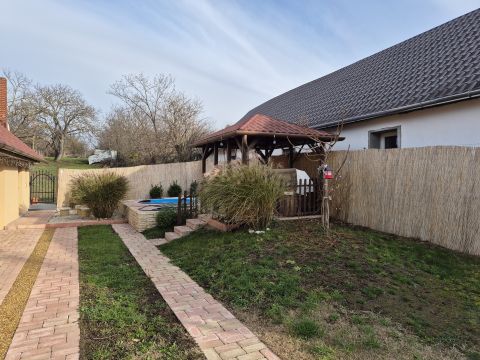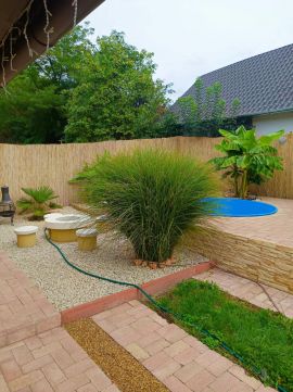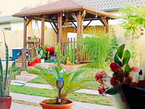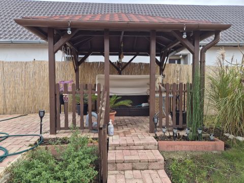 Gyönyörű, gondozott kertjében kerti sütögető és 3 méter átmérőjű medence csábítja ki az ott élőket.
