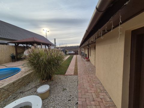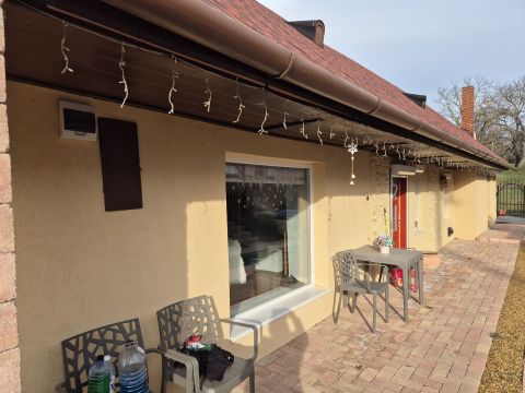 A világos, tágas amerikai konyhás nappali mellett csoda szép fürdőszoba, hálószoba, előszoba került. Az épülethez tartozik még egy háztartási helyiség vízzel, villannyal, melyből egy külön apartman és fürdőszoba is kialakítható. Az elektromos és vízhálózat korszerűsítésén kívül, a nyílászárók cseréje is megtörtént, melyekre műanyag redőny is felszerelésre került. A kellemes hőmérsékletről gázkonvektorok gondoskodnak. A nyári meleg alatt klíma berendezés hűsíti le az ingatlant. A ház vastag falainak köszönhetően nagyon jó tartja a megfelelő hőmérsékletet, ezenkívül rendkívül alacsony rezsi költséggel bír. A tetőre pár évvel ezelőtt új bituzsindelyes fedés került. A ház biztonságáért riasztó berendezés a felelős.