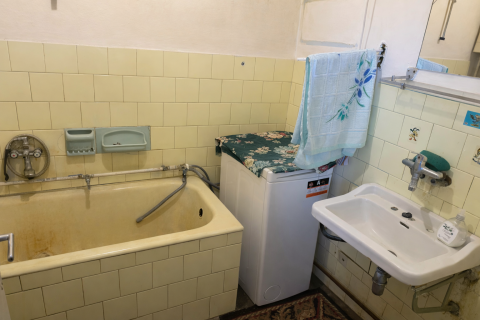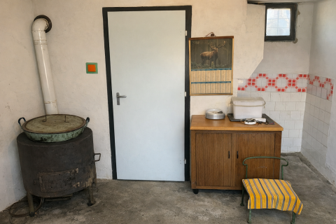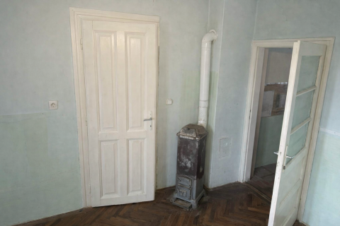 Fűtés: gázkonvektor plusz kályha a nagy szobában