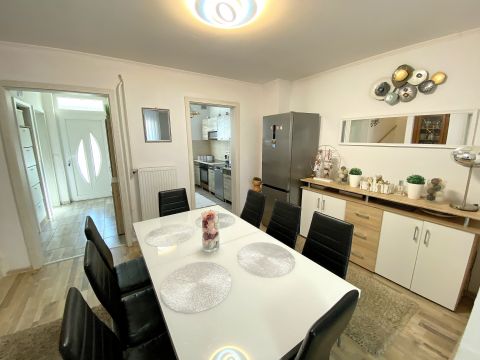 Nyíregyháza, Korányi-kertváros csendes utcájában, hangulatos, 105 nm-es nappali + 3 szobás, felújított sorházház, garázzsal, udvari beállóval eladó.