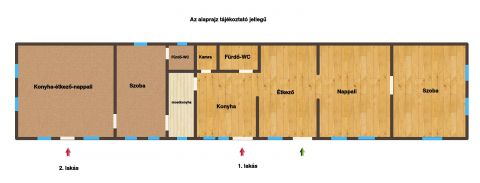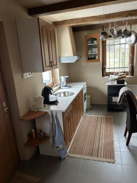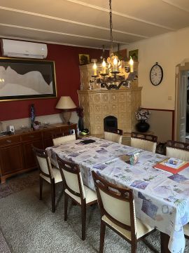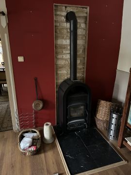Fűtés: vízteres cserépkályha radiátorokkal, kiegészítve klímával és fatüzelésű kályhával.