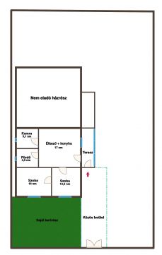 Lakható, tégla építésű 2 szobás házrész várja új tulajdonosát, 200 m² saját használatú kerttel.
