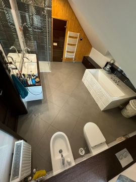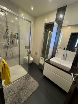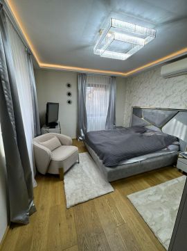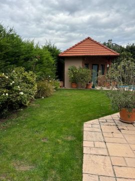A külön álló családi ház egy 900 nm-es parkosított telken fekszik, ahová elektromos kapun jutunk be, és melyen 3 autónak van beálló.Található rajta egy kerti kis ház tárolásra és egy 6x3 m-es medence is .A 130 nm-es terasz fele fedett ,mely téli-nyári sütögetésre, pihenésre alkalmas.Körülötte gyepszőnyeg elektromos öntözőrendszerrel.A 2014-ben magas műszaki tartalommal épült,bruttó 330 nm-es,( nettó 290nm)es házban található egy garázs ,melyből a tágas előtérbe jutunk, ahol beépített szekrények biztosítják a család ruháinál a tárolását.A házban a Glamour stílus uralkodik,melynek minden részét lakberendező álmodta meg!Innen nyílik a hatalmas átriumos teraszkapcsolatos 67 nm-es nappali is , a 27 nm-es étkezős prémium kategóriás konyha, mely kényelmes életteret biztosit egy nagycsalád számára!Az alsó szinten található még egy dolgozó szoba,wc, és egy külön álló fürdőszobás lakrész a vendégek számára!Az eredeti tölgyfa lépcsőn jutunk fel a háló traktusra.Itt találjuk az elegáns szülői hálót-gardróbbal és a 4 személyes Finn szaunával ellátott fürdőszobát.A két gyerekszobához tartozik egy fürdőszoba és gardrób is!