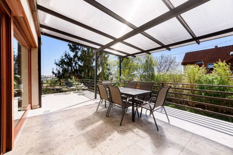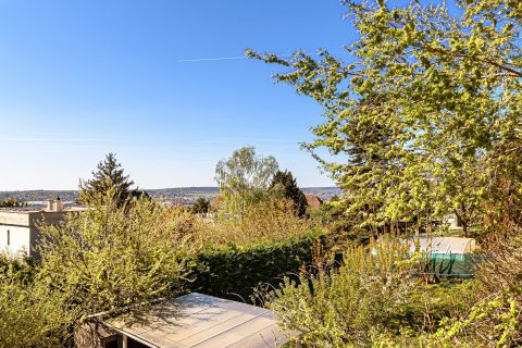 Budapest határában, csendes, zöldövezeti részen eladó ez a 285 nm-s, páratlan panorámával rendelkező családi ház, egy 600 nm-s telken.