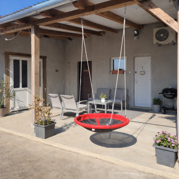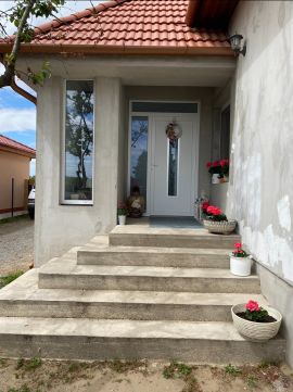 Az 1569 nm-es, teljesen körbekerített, parkosított telken fiatal gyümölcsfák és gondozott pázsit fogadja. A biztonságról telepített kamerarendszer gondoskodik.