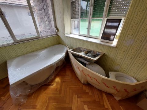 A fürdöszoba szerelvények, szaniterek rendelkezésre állnak.