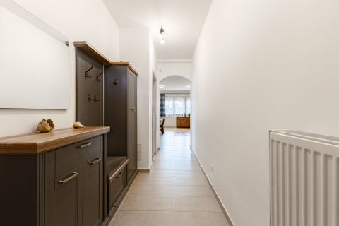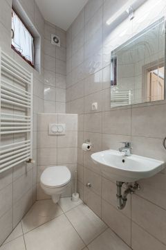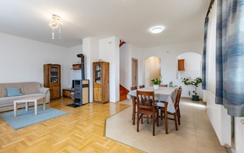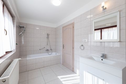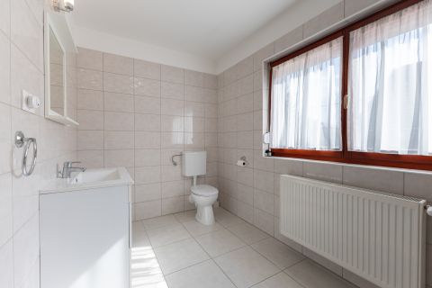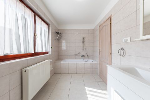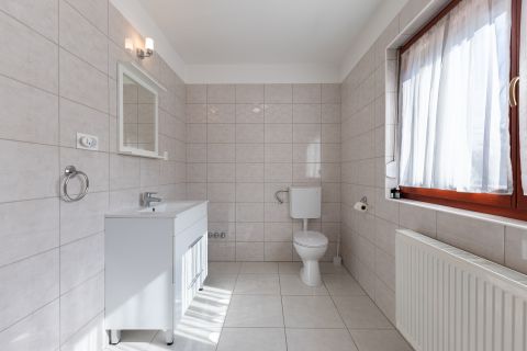 A fűtésről és a használati meleg-víz ellátásról, a garázsban található kombi cirkó gondoskodik, a hőleadók lapradiátorok, a földszinten a fürdőben törölköző szárítós radiátor és páraelszívó növeli a komfortérzetet. Az emeleti fürdőszobában padló fűtés is üzemel.