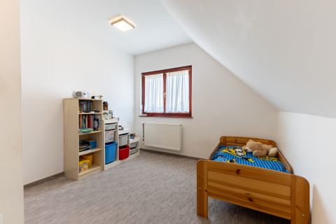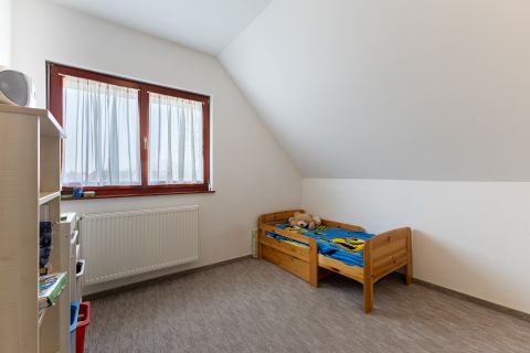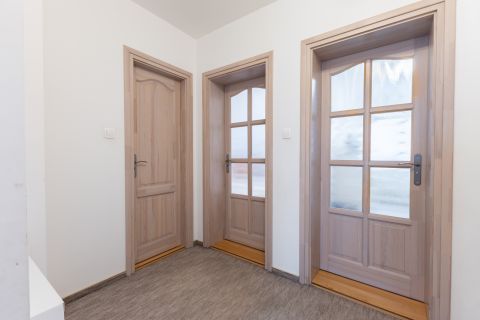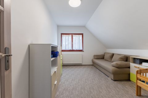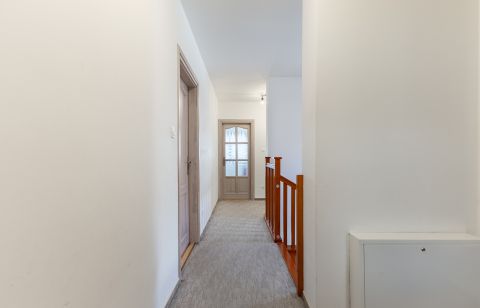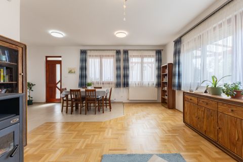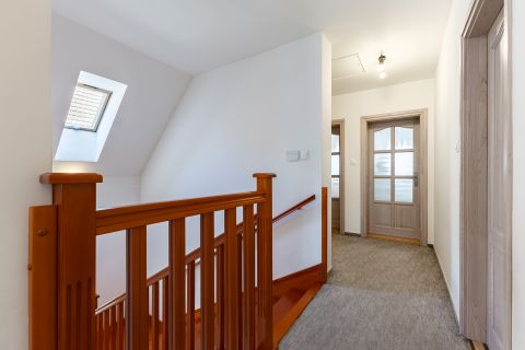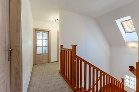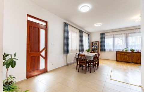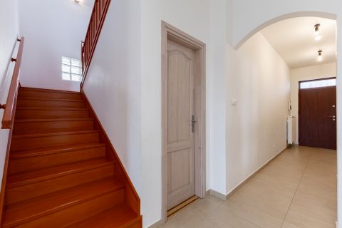 A biztonságról mozgás érzékelőkkel és kamera rendszerrel szerelt riasztó berendezés felel. A ház bejárati ajtaja több ponton záródó, biztonsági ajtó. A homlokzati nyílászárók hőszigetelő üvegezésű, három rétegű nyílászárók, redőnnyel és részben szúnyoghálóval szerelve. Az ablakok csakúgy, mint a belső térelválasztó ajtók, egységes minőségi Borovi fenyőből készültek. Az emelet impozáns bükkfával borított lépcsőkön keresztül érhető el.