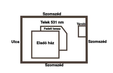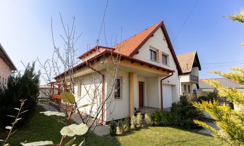 A teljesen körbejárható felépítmény, 2019-ben épült, az 531 nm-es összközműves telek jobb oldali határtól, kb. 0,90 m-re, a bal oldali határtól kb. 4,5 m-re, 6,5 m előkert hagyásával épült beton, sáv alapra, 30 cm-es porotherm tégla falazattal, 10 cm-es grafitos szigeteléssel. A ház tetőszerkezete, (45°-os) egyszerű, nyeregtető, kezelt fagerendákból, hőszigetelt Bramac cserépfedéssel. Az utcafront felől az autóbeállás, elektromos kapun keresztül megoldott, a 21 nm-es garázsba.