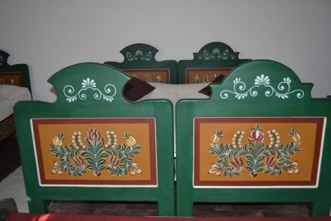 With a timber-beamed ceiling, traditional wood-burning stoves, tile stoves, and authentic hand-painted local folk art, the inn offers a unique atmosphere. Locally crafted ceramic lamps, intricately carved porch columns, and original wooden furniture adorned with ancient Hungarian patterns contribute to an authentic experience for visitors. All rooms are equipped with private bathrooms, and to cater to larger groups, separate restroom facilities have been strategically placed on both levels.
