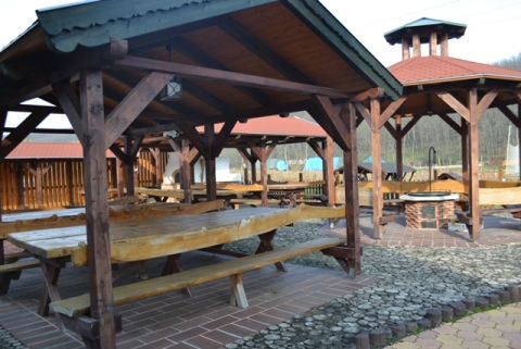 A kertben szaletlik és bográcsozó, kemence és tűzhely szolgálják a szabadtéri programokat.