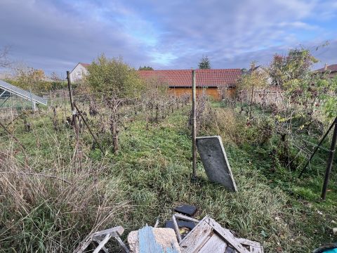 Udvar füvesített, fákkal, szőlővel, illetve helyet kapott egy tárolásra alkalmas melléképület is.