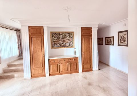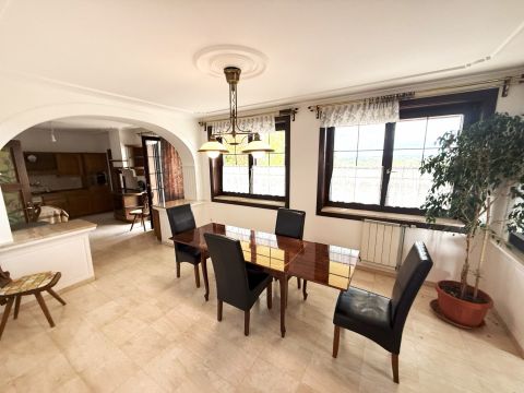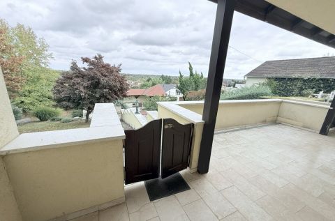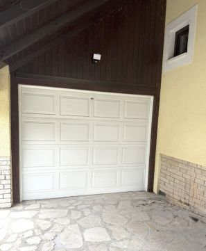Garázs, valamint 3 autó fedett parkolása megoldott, elektromos kapuval, a házban riasztóval.