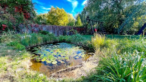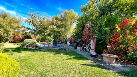 A két telek 2278 négyzetméteres, saroktelek, amely rengeteg lehetőséget rejt magában. A kertben megtalálható egy kerti tó, medence, kerti kiülő, gyerek játszótér, valamint parkolóhelyek a telken belül. A locsolás fúrt kútról történik, ezáltal a fenntartás költséghatékony. Műszaki szempontból a ház rendkívül jól felszerelt: kandalló, három db hűtő-fűtő klíma, gázkazán a radiátoros fűtésért, melegvíz-ellátás gáz- és villanykazánnal, valamint napelemek biztosítják az energiaellátást.