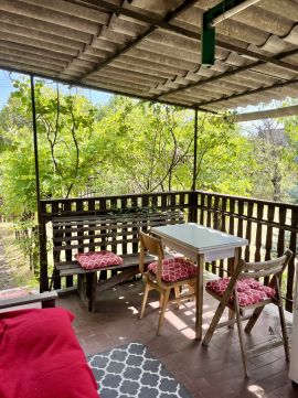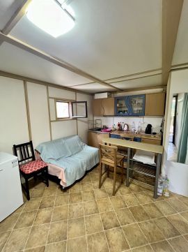 A faház egy hangulatos terasszal kezdődik, amely kiváló helyszíne lehet a reggeli kávézásnak vagy az esti borozgatásnak. Belül két félszoba és egy konyharész található, melyet a beépített konyhabútor tesz praktikussá. A házba a villany be van vezetve, amit a tulajdonos 2020-ban korszerűsített, a telken belül pedig megtalálható a gázcsonk is, így a gáz bevezetése igény szerint megoldható. A locsolásról egy fúrt kút gondoskodik.
