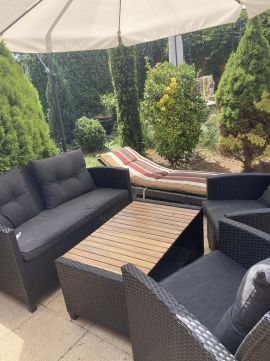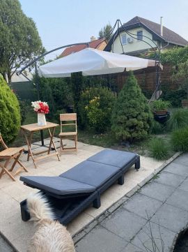 A kert méretéből adódóan kevés gondozást igényel, ugyanakkor ideális pihenéshez, kikapcsolódáshoz. Az udvaron kerti tároló és garázs is rendelkezésre áll.