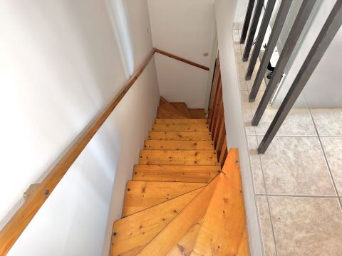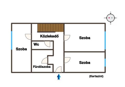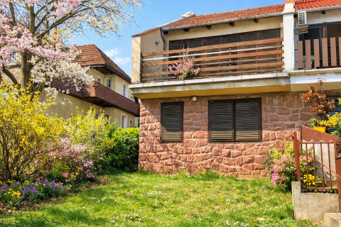 Kertszinten 3 szoba, emeleten egy nagy nappali terasszal. És igen, a terasz az a pont, ahol összeáll a kép: ezért az ingatlanért jönnek ide a vevők.