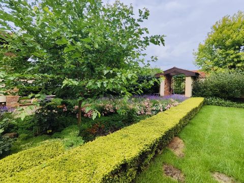 Az udvar parkosított , gyönyörű fák , cserjék, csodálatos pázsit amiről egy korszerű öntöző és locsolórendszer gondoskodik az év mindennapján.