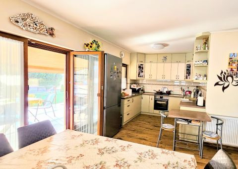 A nappaliból nyílik a parkosított kertre néző 30 nm-es fedett terasz, amely igazi kikapcsolódást nyújthat az egész család számára. De ha valakinek több szobára lenne szükség és szeretné bővíteni az ingatlant, akkor terasz teteje is szigetelt és az összes szükséges közmű kiállás megvan a teraszon, így kényelmesen, gyorsan beépíthető.