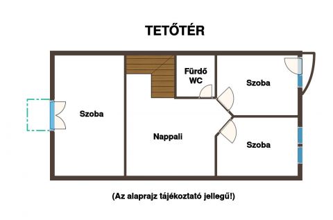 - a tetőtérben: egy tágas második nappali, továbbá egy nagyobb és két kisebb szoba, illetve fürdőszoba lett kialakítva